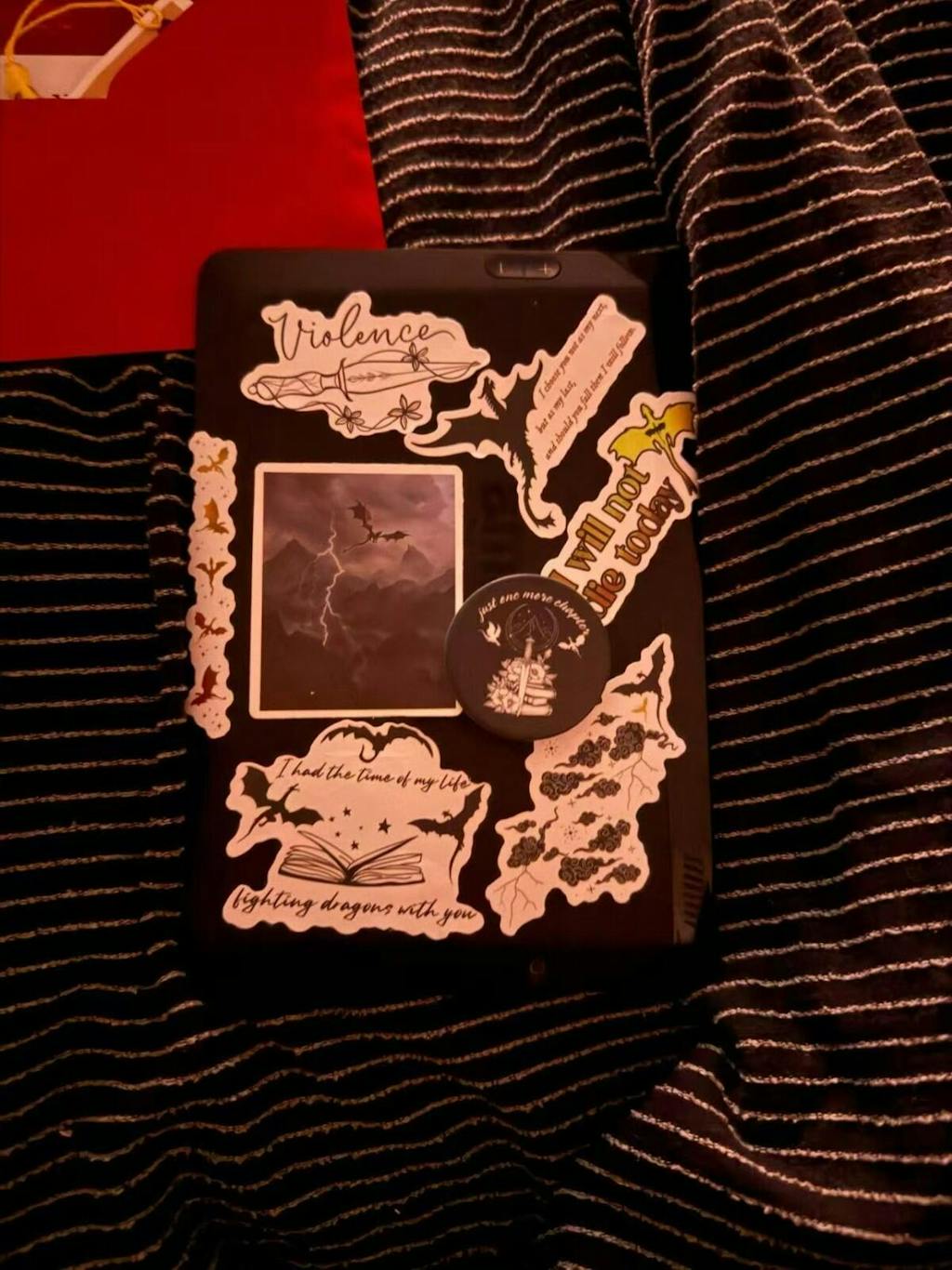what a ride this book nook has been!!! It came with amazing gifts that I immediately had to decorate my kindle with, along with two bookmarks. Redid my Empyrean Series shelves to match how incredible this new decor is!