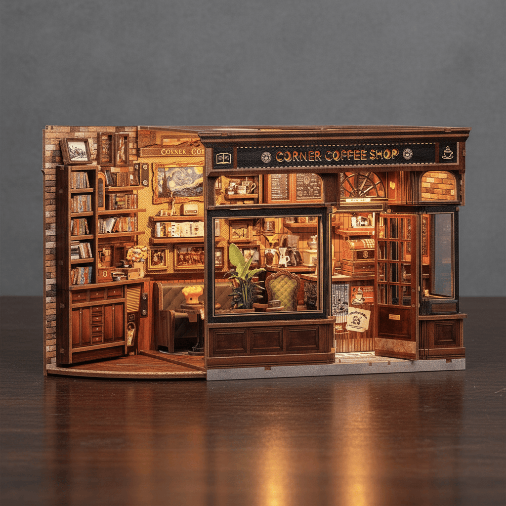 Slow down and savor the joy of creating with our Corner Coffee Shop DIY book nook. As you piece together every shelf, chair, and glowing lamp, the stress of daily life melts away. Each detail comes alive through your hands, turning crafting time into a calming ritual.