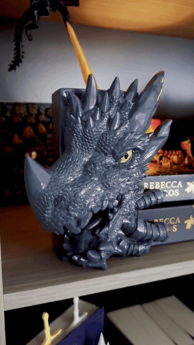 🐉 Inspired by the fierce bond between riders and their dragons in Fourth Wing and Iron Flame, this Dragon Book Nook transforms your shelf into a scene of living fantasy. The dragon’s head and claw emerge from the shadows, as if guarding your treasured volumes from intruders.
