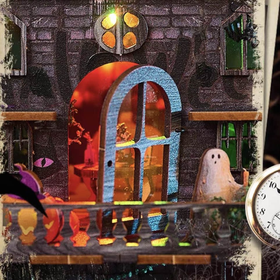 Pre-cut wooden panels, eerie printed finishes, and color-shifting LED lights guide you through a hauntingly fun journey—from the first piece to the final glow. Every part fits snugly with a touch of glue, stickers secure the tiniest details, and the clear steps make this ghostly craft both welcoming for beginners and wickedly satisfying for seasoned makers.