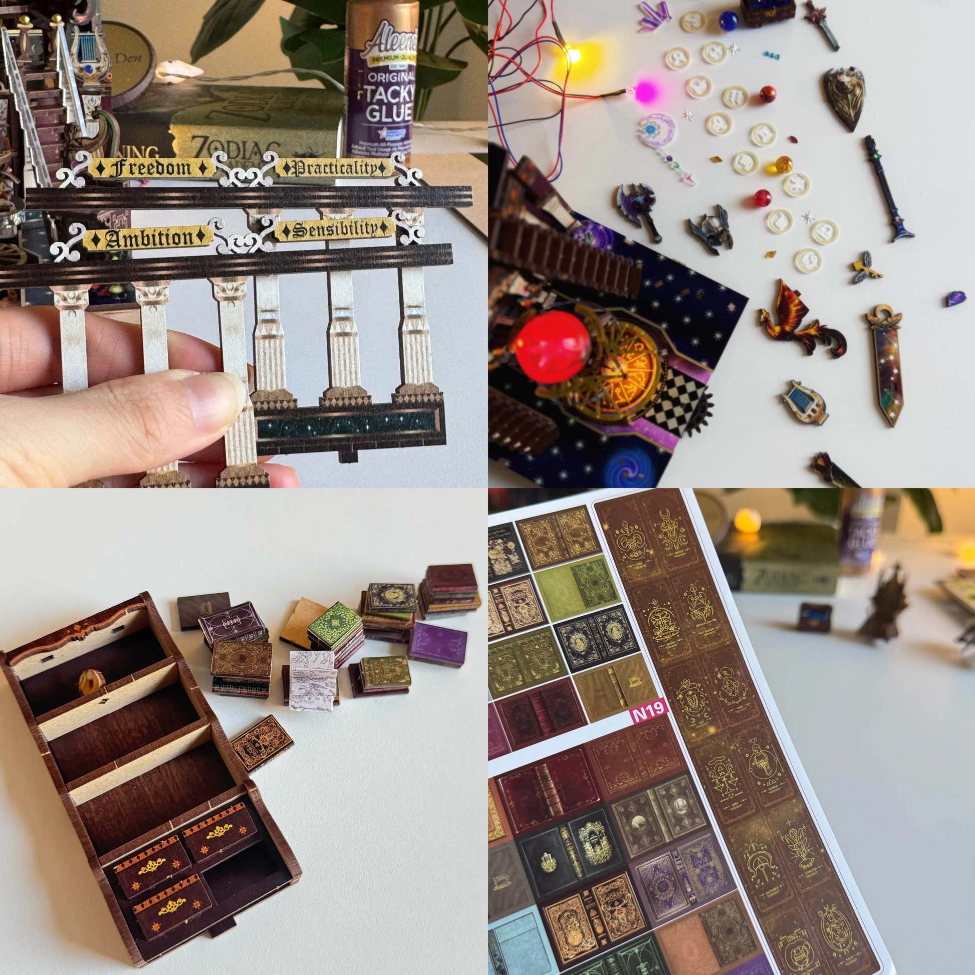 Miniature Magical Academy Scene: Tiny corridors, ancient bookshelves, and floating star-chart tapestries capture the feeling of the academy, instantly evoking the world of the books.